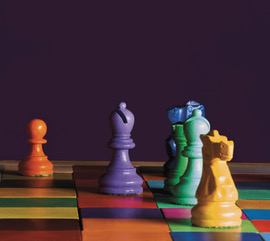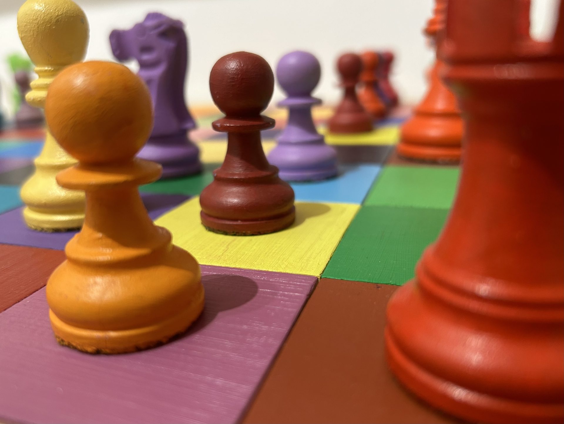 “Le regole del gioco” è una scacchiera di misure regolamentari che, però, sovverte tutte le regole del gioco. Le caselle e i pezzi sono tutti di colori diversi