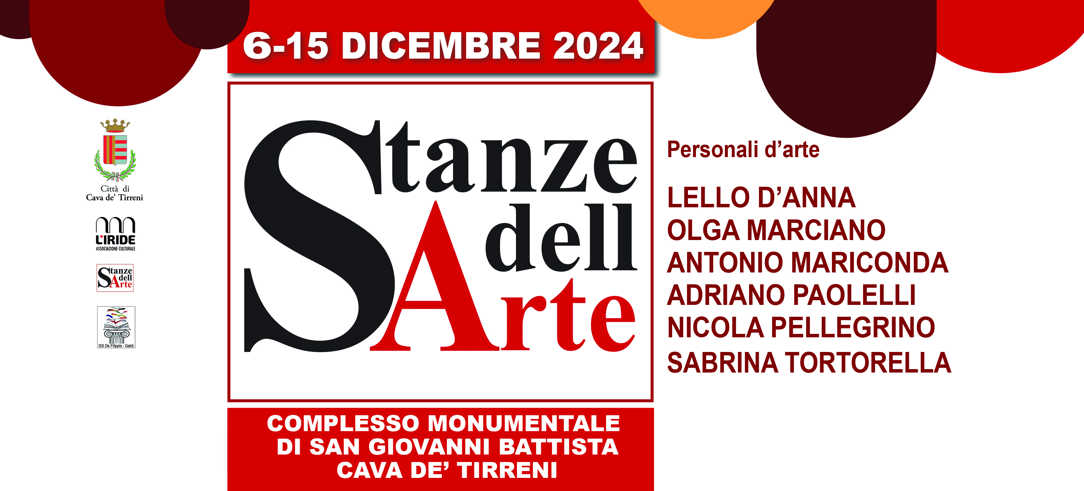 Con il Patrocinio del Comune di Cava de' Tirreni ed in collaborazione con l'Associazione L'IRIDE,presieduta dall'Arch Gabriella Alfano, il 6 dicembre 2024, e del Liceo Musicale De Filippis Galdi, presso il Complesso Monumentale di Cava de' Tirreni (Sa), prende il via la Quarta Edizione del Format "LE STANZE DELL'ARTE".