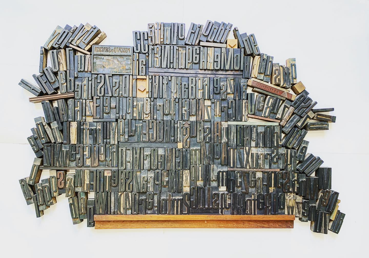 Filippo Monaco, come in una melodia infinita, assembla antiche matrici lignee da stampa, componendo opere plastiche di intensità rara, i caratteri tipografici si personificano, si fanno storia, uomo e sacro fino ad imprimersi dal retro sulla tela.