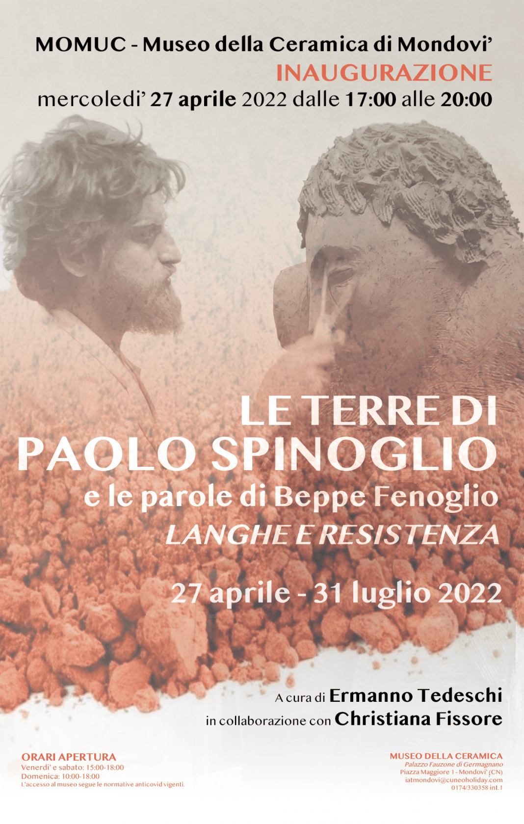 Mercoledì 27 aprile a partire dalle ore 17 inaugurerà la mostra Le terre di Paolo Spinoglio e le parole di Beppe Fenoglio – LANGHE E RESISTENZA presso il MOMUC – Museo della Ceramica di Mondovì. La mostra è a cura di Ermanno Tedeschi in collaborazione con Christiana Fissore.
