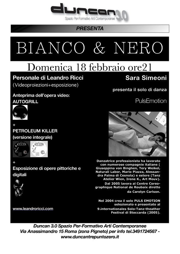 Leandro Ricci presenta in prima visione l’opera video “AUTOGRILL”. Per l’occasione verranno esposte le grandi tele in bianco e nero dell’artista, i lavori digitali e la proiezione del video