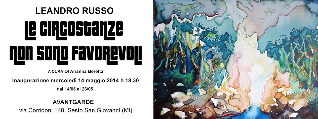 Inaugura mercoledì 14 maggio da Avantagarde di Sesto S. Giovanni, Le circostanze non sono favorevoli, la personale di Leandro Russo. L’artista espone circa quindici tele e alcune piccole carte, in una mostra personale che raccoglie il frutto dell'ultimo anno della sua ricerca artistica.