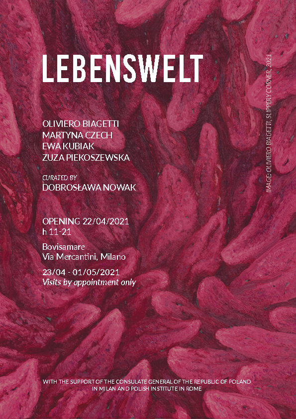 Lebenswelt è una mostra collettiva con la partecipazione degli artisti Oliviero Biagetti, Martyna Czech, Ewa Kubiak e Zuza Piekoszewska, curata da Dobrosława Nowak nello spazio di Bovisamare, via Mercantini, Milano. La mostra è visitabile solo su appuntamento.
