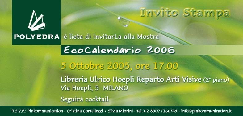 Per tutta la prima settimana di ottobre sarà possibile ammirare in anteprima, ed eventualmente acquistare, l’EcoCalendario 2006 firmato Polyedra