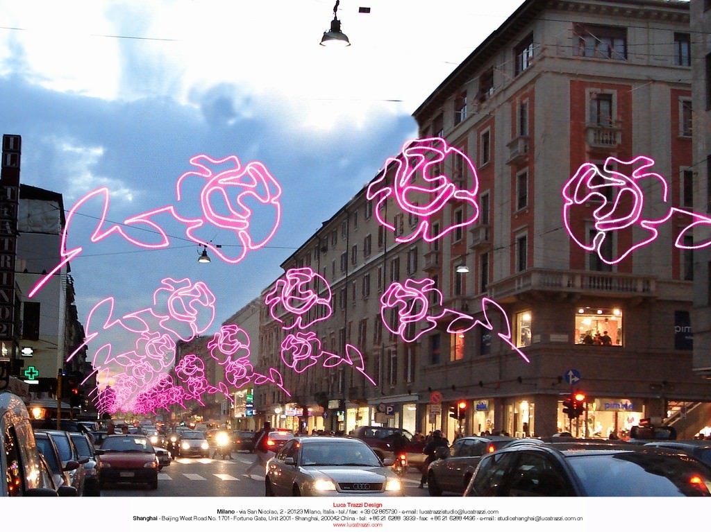 Da Piazzale Loreto a Via Senato oltre 5 km di luci per la via delle Rose più lunga d’Europa, un omaggio alla Rosa Gran Milano che la prossima primavera abbellirà con i suoi colori e profumi le aiuole verdi della metropoli.