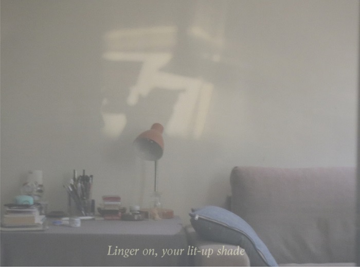Come afferma l’artista stesso, Linger on, your lit-up shade, - “narra di quei momenti e pensieri che sovvengono quando ci si sveglia in una stanza, con la luce del sole che splende attraverso la tenda della finestra, ovunque ci si trovi. Si tratta di quei momenti e pensieri che difficilmente possono essere condivisi. Tranquilli, silenziosi, luminosi, tristi e già passati” -.