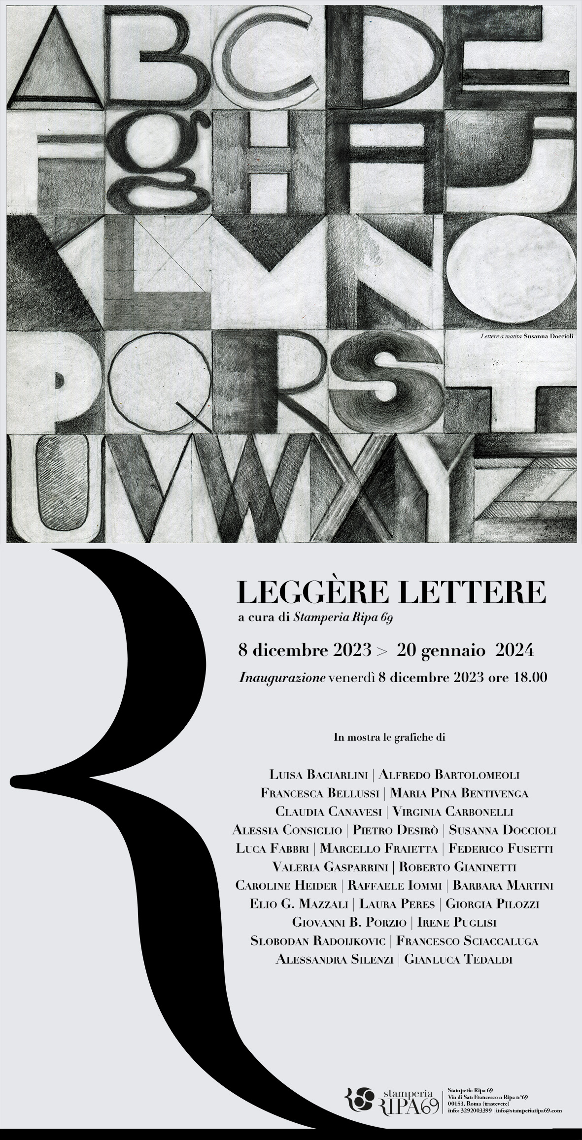 Questa mostra vede coinvolti 26 incisori, a ciascuno dei quali è stata assegnata una lettera diversa, per interpretarla in maniera libera, con la tecnica di incisione e il materiale e gli strumenti più affini al proprio lavoro. Libera anche la carta su cui ogni artista ha deciso di stampare.