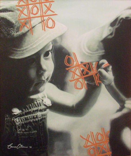 Franco Cisternino raffigura la sua personale poetica del fanciullino riportando alla coscienza l’epoca dell’infanzia, spesso caduta in oblio in età adulta. Il bianco e nero degli infanti, nei dipinti di Cisternino, colloquia costantemente con un mondo esterno a colori, e talvolta è il colore stesso che è spalmato sulla pelle e sulla superficie del piano pittorico quasi fosse, quest’ultimo, un vetro a separare il nostro mondo e quello della rappresentazione.