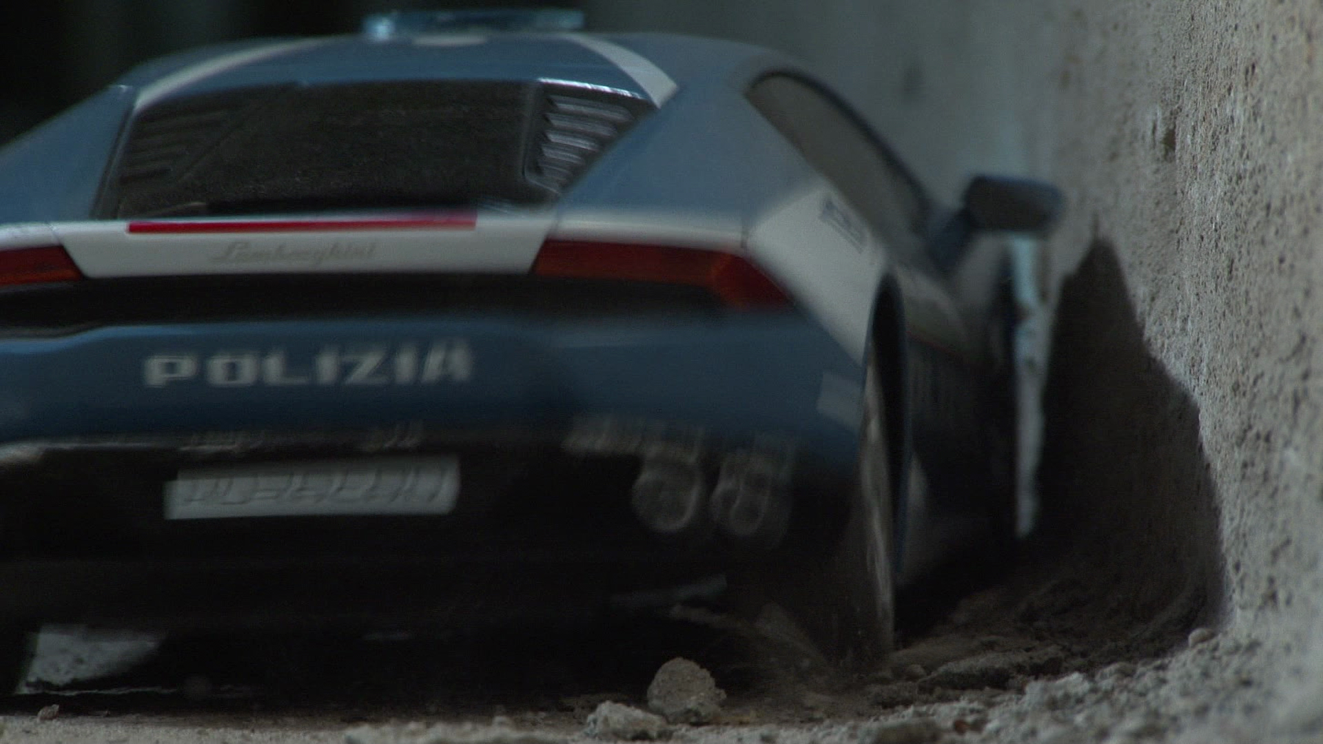 La supersportiva della Lamborghini, donata alla Polizia di Stato, soprannominata Huracán; un toro da corrida dotato di una forte inclinazione all’attacco. L’intervento realizzato dall’artista a TOAST, ex casotto della portineria della Manifattura Tabacchi, inizia con l’acquisto di questo modello.