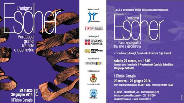 L’esposizione promossa dall’Associazione Culturale Marcovaldo, con il sostegno della Regione Piemonte e della Fondazione CRC, e con il contributo della Fondazione CRT, in collaborazione con la Fondazione Palazzo Magnani di Reggio Emilia è curata da un Comitato scientifico d’eccezione coordinato da Piergiorgio Odifreddi – logico matematico di fama internazionale –, e composto da Marco Bussagli – saggista, storico dell’arte, docente presso l’Accademia di Belle Arti di Roma –, da Federico Giudiceandrea – collezionista e studioso di Escher – e da Luigi Grasselli –