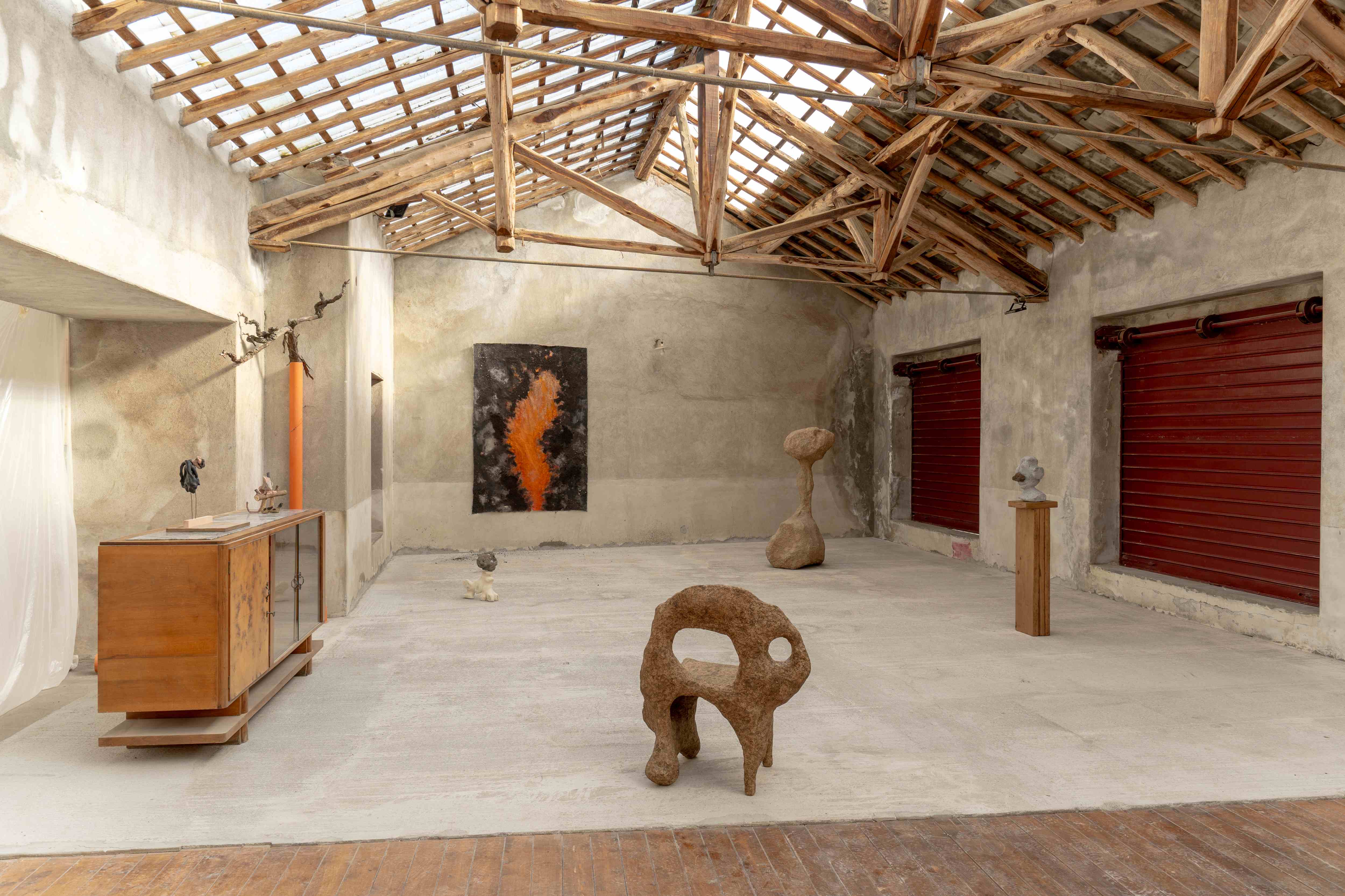 La mostra “Leo Orta. Terra Etna” riunisce otto sculture e due dipinti scultorei realizzati durante la residenza, ispirati al concetto di erosione.
