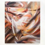 Dall'altro lato c'è Gao Xintong, giovane talento emergente, la cui ricerca, profondamente radicata nella filosofia taoista, indaga temi come la spiritualità, la contemplazione e l'armonica frizione tra movimento e quiete, utilizzando la pittura come strumento per dare forma all’invisibile. Sfumature fluide di colori, fasci di luce vibranti, energie antitetiche e forme indefinite — quasi sinografiche — si intrecciano nelle sue tele, dando vita a una pittura che sfida i confini del figurativo e invita a un'esperienza immersiva e inedita, armoniosamente oscillante tra tradizione e avanguardia. Le sue opere, che fondono con originalità il Futurismo italiano e la tradizione orientale, indagano l’equilibrio tra movimento e immobilità attraverso la lente della filosofia taoista, in particolare del concetto di qi e della dualità tra vuoto e pieno. Tutte le sue composizioni, costruite con meticolosa cura mediante linee fluide e colori vibranti, richiamano la sua cultura di appartenenza e incarnano, per l'appunto, l’idea di qi: quell’energia vitale, invisibile ma percepibile, che attraversa la natura e permea l’intero cosmo. Legato al mutamento e al movimento del mondo reale, il qi si manifesta in ogni essere vivente, dando vita a un flusso visivo che unisce dimensioni fisiche e spirituali. Nelle sue opere, la relazione tra pieno e vuoto diventa motore dinamico, generando immagini interiori e recondite. La tela si trasforma così in un paesaggio encefalico, caratterizzato da linee fluide e colori vibranti, che si alternano tra toni caldi e freddi. Ogni elemento assume una funzione simbolica ed energetica, dando vita a un'astrazione che invita a esplorare il flusso dinamico e l'incondizionata energia spirituale della natura. Nel suo lavoro prendono vita paesaggi evocativi, dove il vuoto, forza silenziosa e dinamica, consente agli elementi di affiorare e animarsi gradualmente. Il suo approccio pittorico riflette soventemente il desiderio di catturare l’“energia dell’aria” e di esplorare il flusso attraverso un gesto che, pur essendo spontaneo, è sempre preciso, misurato e mai casuale.