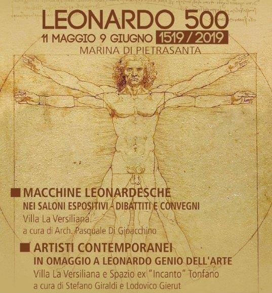 L'altra mostra dal titolo “Leonardo 500. 1519-2019” proporrà invece nella Villa e nelle sale dell'Ex Incanto di Tonfano, il mondo di Leonardo visto attraverso le tele, disegni e sculture di oltre 40 artisti, pittori, illustratori e scultori contemporanei di fama che hanno esplorato l'uomo, reinterpretato la sua immensa eredità artistica oppure “scherzato” con disegni e divertissement sul genio leonardesco. Una grande collettiva giocosa e divertente dal sapore dadaista, che come un mosaico, tassello dopo tassello, disvela l'estrosa personalità e la complessità dell'opera di Leonardo. Organizzata in collaborazione con il Comitato Archivio artistico-documentario Gierut, ideata e curata dal critico d'arte Lodovico Gierut e da Stefano Giraldi, fotografo specializzato in arte e architettura che nel corso della sua carriera ha fotografato per Giunti Editore le opere di Leonardo in tutta Europa, la mostra sin dagli iniziali preparativi ha riscontrato il favorevole giudizio di Carlo Pedretti considerato uno dei maggiori esperti della vita e dell'opera di Leonardo. Articolata in due sezioni con l'intento di creare un percorso sinergico, la mostra si svilupperà su due distinte sedi: La Villa La Versiliana e gli spazi dell'Ex Incanto in prossimità del Pontile di Marina di Pietrasanta. La Villa La Versiliana ospiterà 4 tele di grandi dimensioni realizzate da Massimo Cantini, Andrea Granchi, Alessandro Reggioli e Angelo Vadalà, e una scultura/sedia di Davide Manfroni. Qui l'anima giocosa della mostra si presenterà in particolare attraverso opere divertenti e acute che sicuramente incuriosiranno anche i più giovani e cioè disegni umoristici di (in ordine alfabetico) Dino Aloi, Gianni Audisio, Blub, Massimo Cavezzali, Lido Contemori, Ramona Costantini Always, Milko Dalla Battista, Marco De Angelis, Alessandro Palex Prevosto, Mauro Pispoli, Ezio Poli, Massimo Presciutti, Giuliano Rossetti, Sergio Staino, nonché un acrostico rispettivamente di Mariuccia Nespolo e di Ezio Poli. Non mancherà una sezione denominata “Distraction”con stampe su “La Gioconda” di Leonardo (Botero, Dalì, Duchamp,Warhol...).La sede dell'Ex Incanto ospiterà invece opere d'arte prevalentemente pittoriche di Roberto Altmann, Alberto Bongini, Roberto Braida, Anna Chromy, Raffaele De Rosa, Feofeo, Riccardo Ghiribelli, Paolo Grigò, Francesco Guadagnuolo, Antonio Ieradi, Riccardo Luchini, Renzo Maggi, Giancarlo Marcali, Annamaria Maremmi, Giovanni Masuno, Giacomo Mozzi, Andrea Prandi, Marcello Scarselli, Gabriele Vicari.La mostre saranno inaugurate sabato 11 maggio con due cerimonie ufficiali ( alle 11 alla Versiliana e alle 17 all'Ex Incanto) per tagliare il nastro nelle due sedi espositive. Nell'occasione dell'inaugurazione alle ore 18.00 davanti al pontile di Marina di Pietrasanta, si terrà un intervento musicale dedicato alle canzoni di Leonardo arrangiate e suonate in chiave contemporanea da Andrea Garavelli (basso), Gianni Nesto (batteria), Carlo Guardamagna (chitarra), Nicola Farinello (voce). Chiara Jeri e Andrea Barsali canteranno la canzone originale “Monnalisa” di Cristiano Angelini.