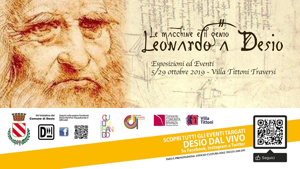 Il G.A.D. presenta la mostra d’arte  Leonardo a Desio – Le macchine e il genio: in esposizione 40 riproduzioni delle macchine di Leonardo da Vinci realizzate dall’artigiano fiorentino Paolo Tarchiani. La mostra è curata da Monica Catto.
