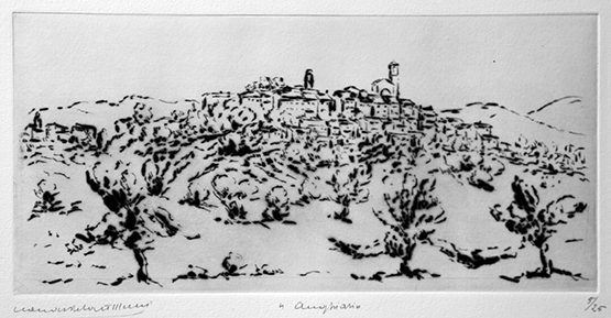 Come se fosse stato il paesaggio urbinate ad avvicinarlo all’area dei suoi primi interessi culturali (Raffaello, Barocci, il vedutismo lagunare e quanto poteva aver assimilato dal volume del Pica sugli impressionisti pubblicato nel 1908) e, attraverso tale esperienza, a condurlo per la difficile strada dell’individuazione, i “motivi” tracciati sul metallo o sulla carta o sulla tela di Castellani nascevano, e molto lentamente, solo nella sua testa. Se le sue acqueforti erano quasi sempre impostate e risolte in pochi giorni, senza pentimenti, con una padronanza assoluta dei toni e delle forme, spesso sul solco di un rapido e leggero accenno della matita, questo scioglimento si verificava solamente dopo una lunga incubazione, dopo una lenta e meditata assimilazione del soggetto, dopo una serie di schizzi preparatori, quando cioè l’opera era già matura nella sua mente.