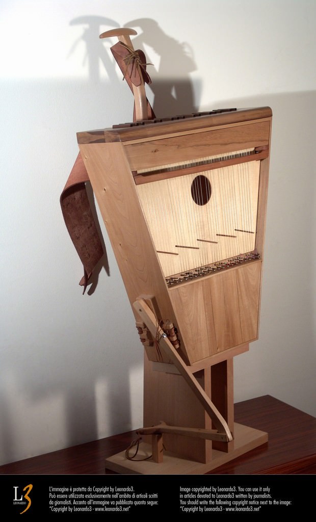 Si tratta di uno strumento progettato dal genio del Rinascimento, ma mai realizzato, che produce il suono di una viola con la tastiera del pianoforte.