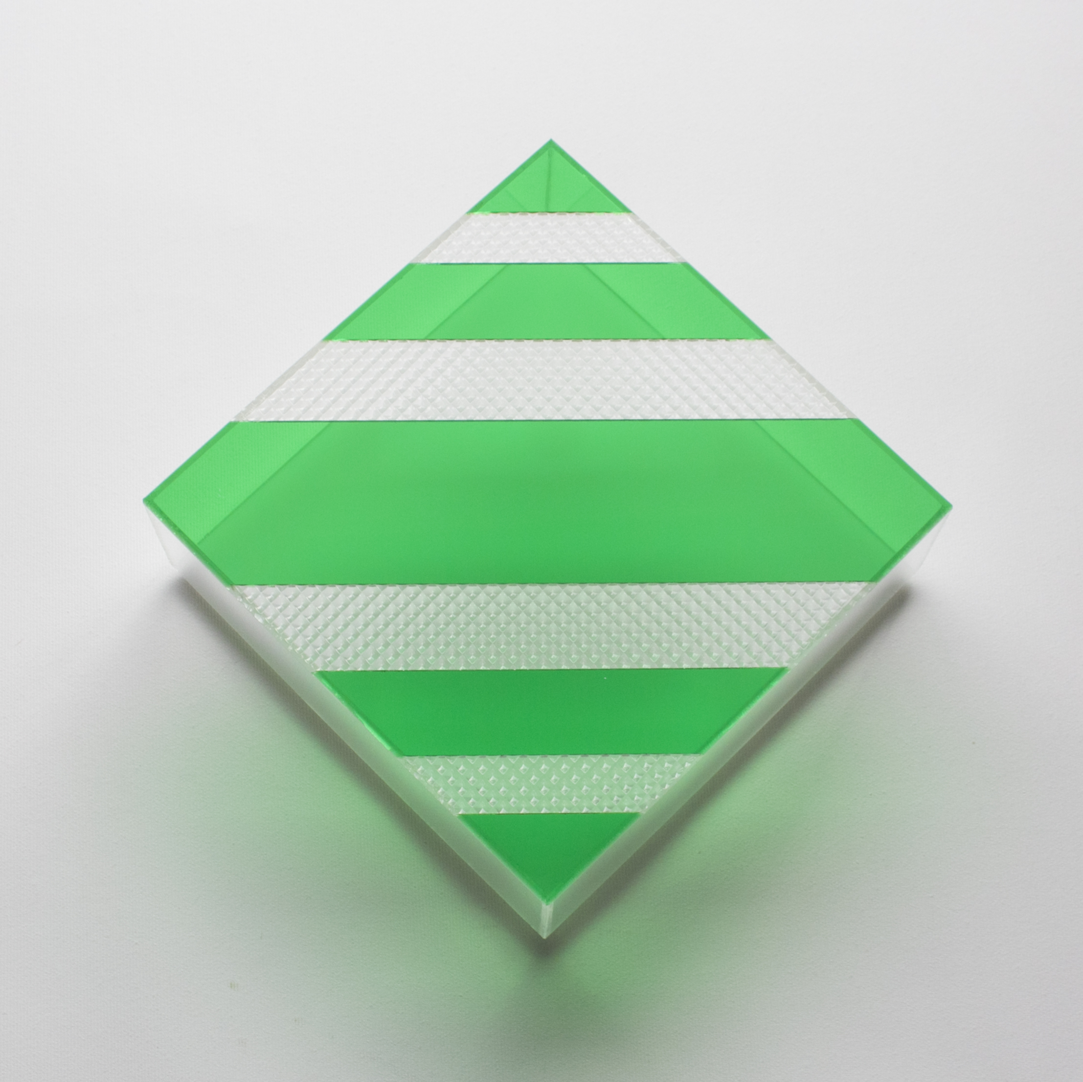 Dalla cromia più complessa rispetto ai lavori precedenti con un senso compositivo molto “musicale”, da queste opere scaturisce un sentimento vitale - forse proprio in contrasto al difficile periodo di cattività imposto a tutti dalla pandemia - e un’energia che porta a intravvedere nuove dinamiche oltre il sistema della teca: le righe cominciano a spezzarne l’ortogonalità e questo produce un’interessante deformazione percettiva delle forme geometriche pure delle scatole di plexiglass.