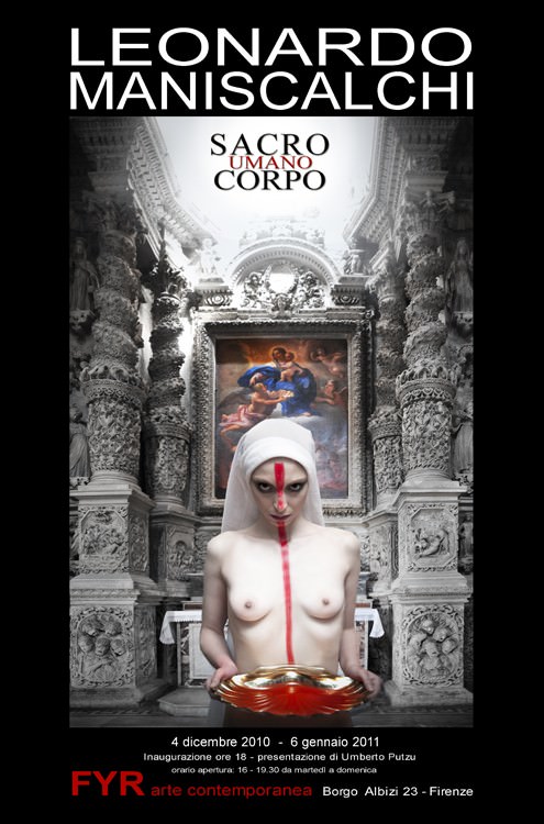 Leonardo Maniscalchi, grande interprete della comunicazione fotografica internazionale, ritorna nel cuore di Firenze, in Borgo degli Albizi, proprio nella stessa strada del centro storico in cui aprì il suo primo studio, per festeggiare 30 anni di successi internazionali. Con l’esposizione dal titolo: ”Sacro Umano Corpo”, presentata dal critico d’arte Umberto Putzu, esordiscono in anteprima assoluta alla Galleria FYR arte contemporanea le sue ultime straordinarie elaborazioni fotografiche. In questa mostra, già molto attesa come sottolinea Umberto Putzu: “Leonardo Maniscalchi mette al centro l’uomo, inteso come umanità, corporeità, sacralità. L’ottica dell’esposizione è l’irripetibile sacralità dell’uomo, proprio nell’era della tecnologia, che tende a fare dell’uomo stesso un semplice ingranaggio sostituibile del sistema. Per questo ”Sacro Umano Corpo”, è una forte testimonianza della complessità della nostra epoca, al di là di forzature e contrapposizioni, tra bianco e nero, bene e male, mente e corpo… troppo spesso alimentate oggi anche dai media. Lo stesso titolo rivela un carattere essenziale, quanto emblematico e concettuale, per un nuovo paradigma di immagini, dove i corpi irrompono nelle chiese con l’ardore del