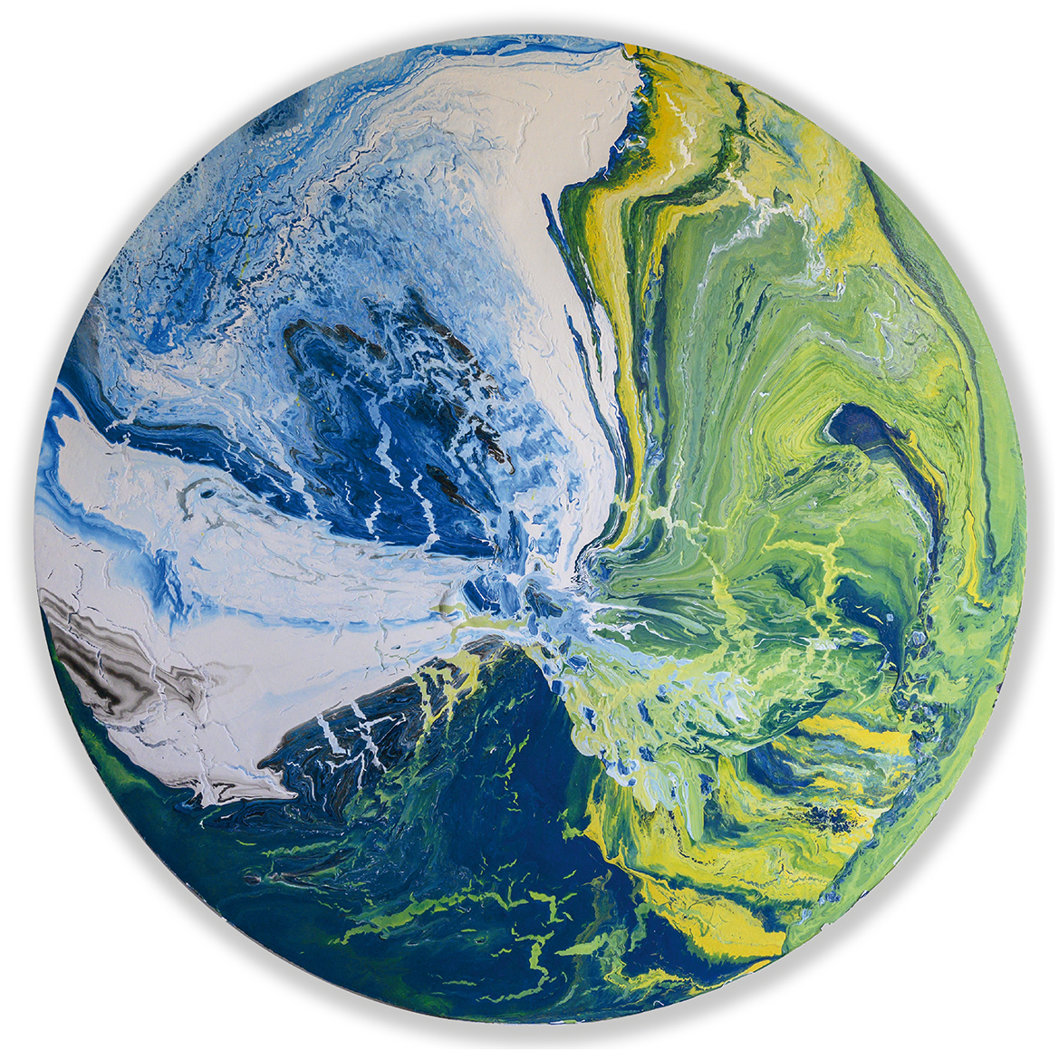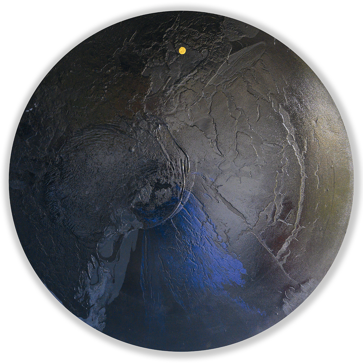 Leonardo Savini, nasce nell’agosto del 1960 a Bazzano, in Valsamoggia, in provincia di Bologna, dove attualmente vive e lavora. Il suo è un percorso formativo del tutto autonomo e personale, non accademico ma libero ed istintivo, fatto di visite ai musei, gallerie e pinacoteche. Abituato fin dall’adolescenza a lavorare sodo insieme al padre la calce e la malta con la cazzuola ed il caldarello per creare costruzioni durature nel tempo, il lavoro ha rafforzato le sue mani che oggi plasmano la materia ed usano “utensili” diversi per creare invece opere d’arte. Una rivoluzione che prende vita dalla creazione della struttura del telaio, tondo, simbolo della completezza e dell’armonia che non dà spazio ad opposizioni e rotture. Leonardo costruisce i suoi telai, sceglie la tela e la fissa alla struttura con grande precisione, anticipando nel gesto fisico tutta l’energia che poi si ritrova nelle sue opere. Savini è un pittore contemporaneo riconosciuto per la sua maestria nell’uso del colore e per le sue imponenti tele rotonde. Le opere di Savini evocano immagini di “pianeti” o “mondi” visti da distanze siderali, che invitano lo spettatore a percepire questi paesaggi con la propria sensibilità, trovando riferimenti a luoghi reali o immaginari. Il colore colato sulla tela, che viene manipolato e lasciato correre in modo naturale è il gesto originario sperimentale che si trasforma poi in atto consapevole, espressione artistica, che si concretizza in uno stile unico astratto e materico di action painting, dove il movimento del colore diventa una danza di energia e libertà. Le sue tele rotonde, di grandi dimensioni, amplificano l’effetto di stupore e meraviglia nello spettatore, che si perde nelle profondità abissali dei blu intensi e tra le dune dorate dei suoi deserti. Il cerchio, per Savini, non è solo una forma artistica ma un simbolo di continuità e di infinito. La forma circolare delle sue opere invita a una visione senza fine, un viaggio attraverso spazi aperti e sconfinati. La prima esposizione pubblica di Savini, intitolata “Emergenze”, rifletteva la necessità dell’artista di far emergere quanto interiorizzato. Un tema ricorrente nelle sue opere è la visione degli ampi spazi, ispirata dalle sue esperienze come biker Dakariano, avendo partecipato a ben tre Parigi-Dakar. I deserti africani, le prospettive infinite e le dune riemergono nelle sue tele, dove il colore e la materia si dilatano, si contraggono e s’increspano, creando un effetto unico e coinvolgente. Le opere di Leonardo Savini orientano lo spettatore verso un altrove inesplorato, conosciuto/sconosciuto, che sembra vero o verosimile. Attraverso l’uso sapiente del colore e della forma, Savini trasmette un senso di esplorazione e di scoperta, guidando lo spettatore in un viaggio emozionale e visivo che celebra l’energia e la libertà insite nella sua arte. (M.R.)