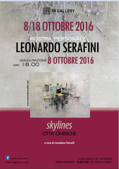 Immagini come emanazione della psiche, prima che prodotti della vista; immagini come espressione di un inconscio collettivo, prima che individuale; immagini come lasciti di una memoria filtrata e mitica. Le città oniriche di Leonardo Serafini sono una composizione unica con i propri skylines, profili di una immaginazione che prendono forma ora da un cromatismo esagerato e accattivante, ora da cromie volutamente ribassate e in dissolvenza, dove è la forza dell’intuito, la capacità visionaria, a cogliere le strutture formali che si dispiegano in una controllata trasparenza.In un percorso di sviluppo coerente, che dalle prime serie dei “Pearl Harbour” approda alle composizioni psichiche delle “Città oniriche”, Leonardo Serafini, artista marchigiano tra i più promettenti dell’ultima generazione, sintetizza nella sua opera le grandi tendenze espressive di secondo Novecento, rigenerandole in un linguaggio innovativo e accattivante, dalle sfumature distopiche, che si pone come possibile chiave interpretativa dei nostri tempi attuali