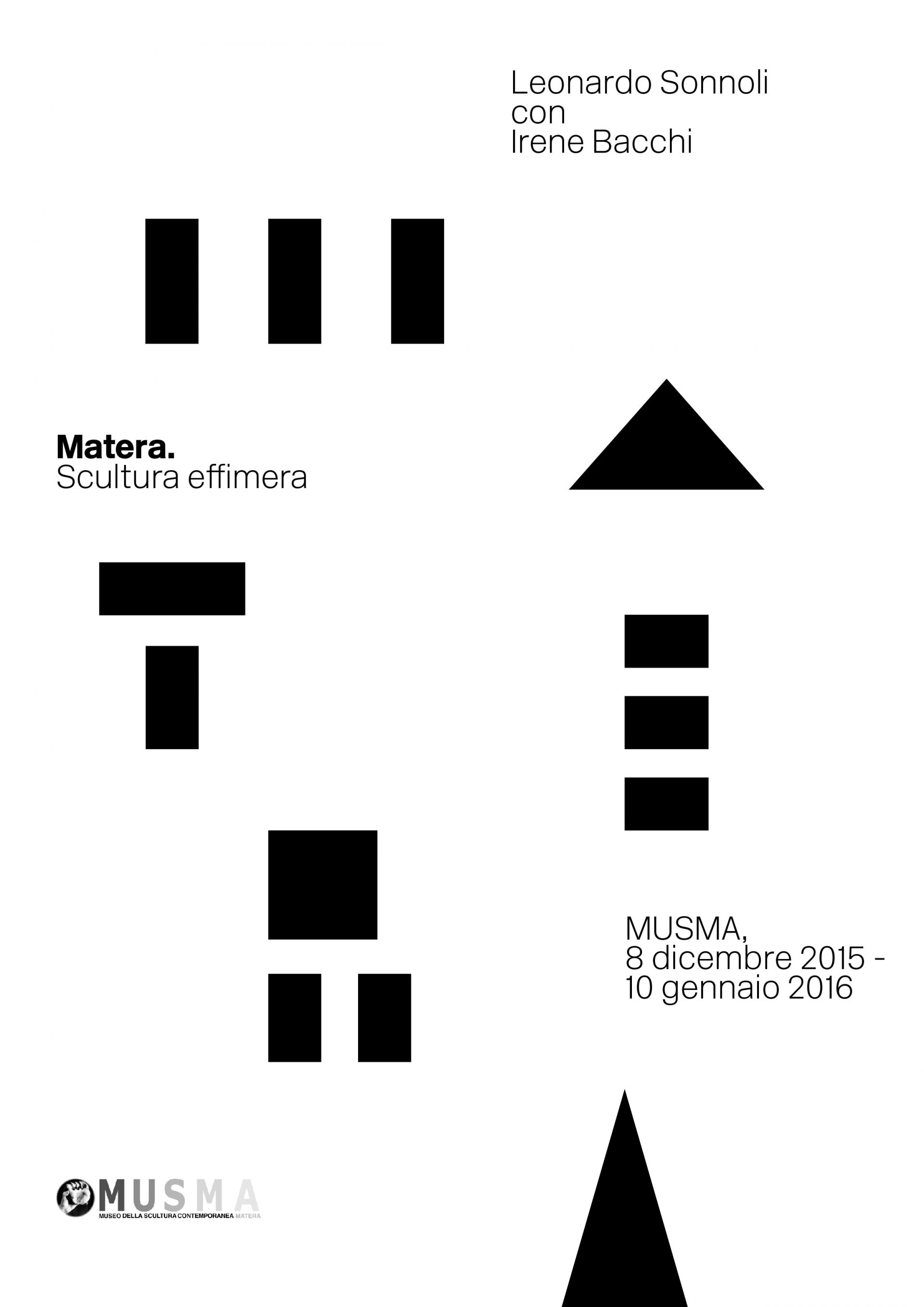 “Matera” è il titolo della scultura effimera realizzata per il MUSMA e per Matera da Leonardo Sonnoli, uno dei grafici italiani più noti a livello internazionale, insieme a Irene Bacchi, la sua giovane e talentuosa collaboratrice. L’opera sarà esposta nella Saletta della grafica di Palazzo Pomarici dall’8 dicembre 2015 al 10 gennaio 2016.