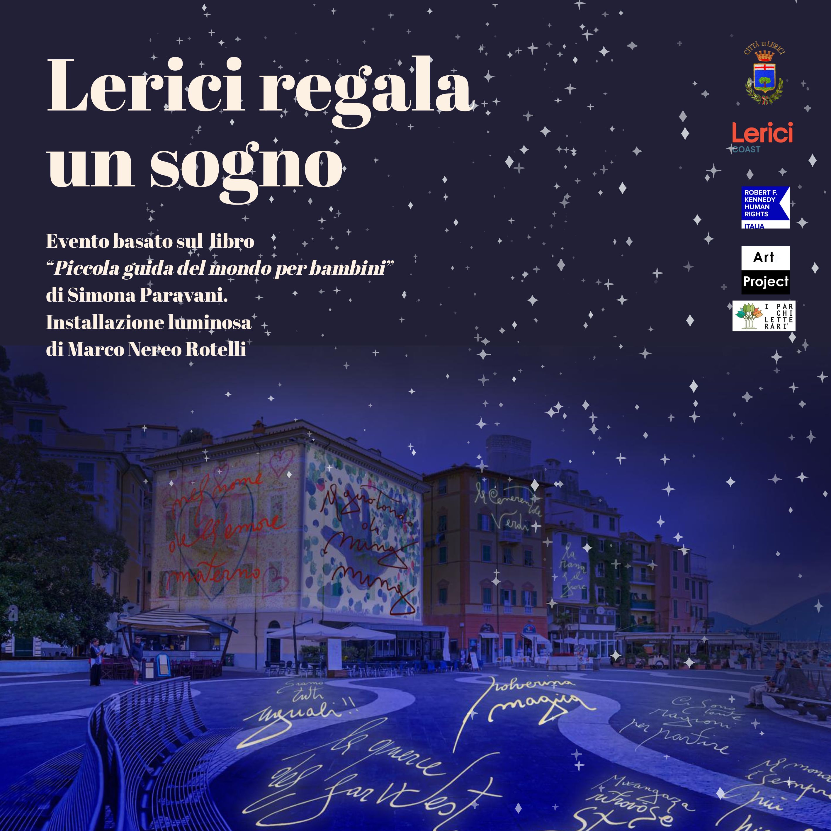 "Lerici regala un sogno: i bambini al potere!" progetto artistico a cura di Marco Nereo Rotelli dedicato al libro “La Piccola Guida del Mondo per Bambini” di Simona Paravani, con il patrocinio dell’Associazione Robert F. Kennedy Human Rights Italia.