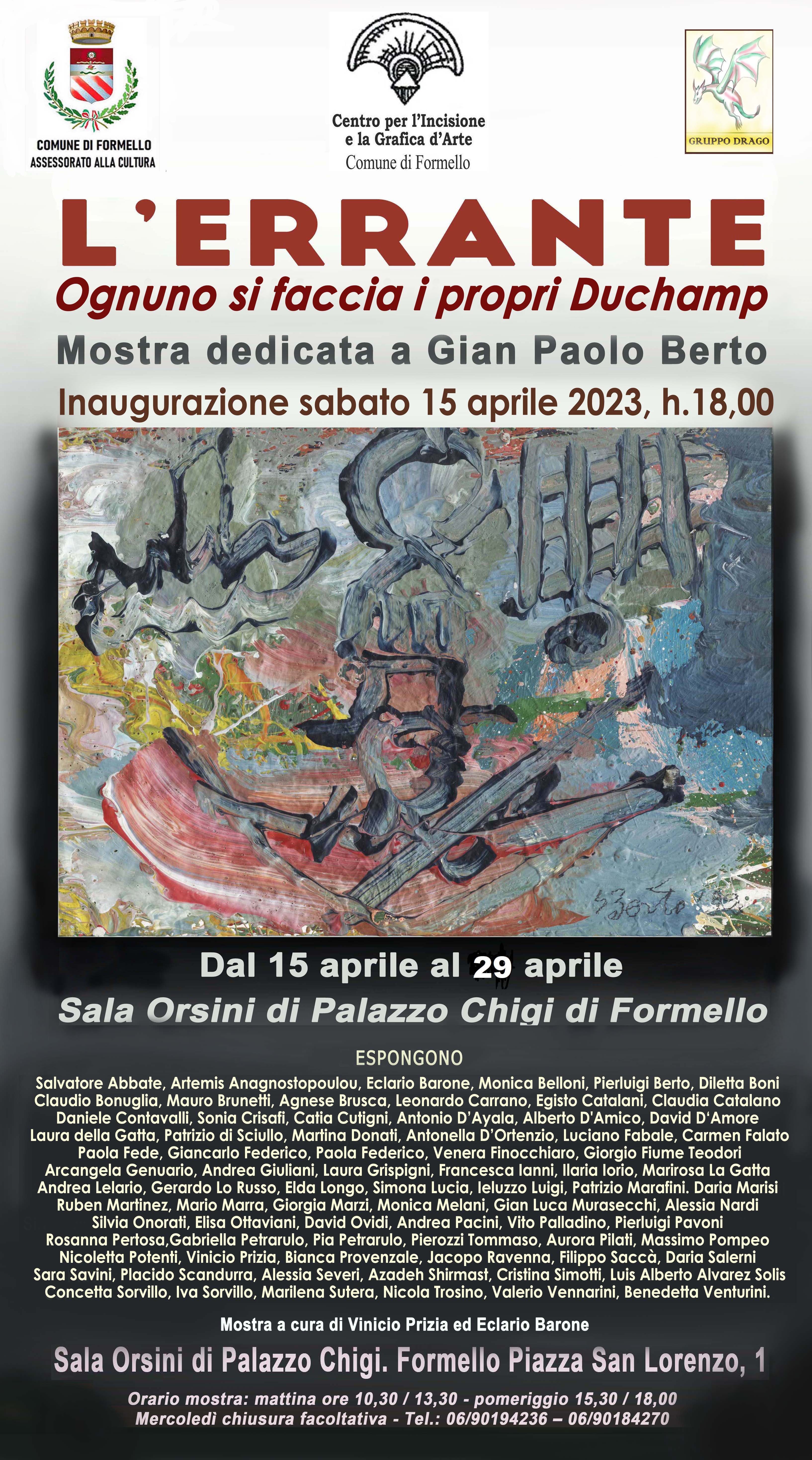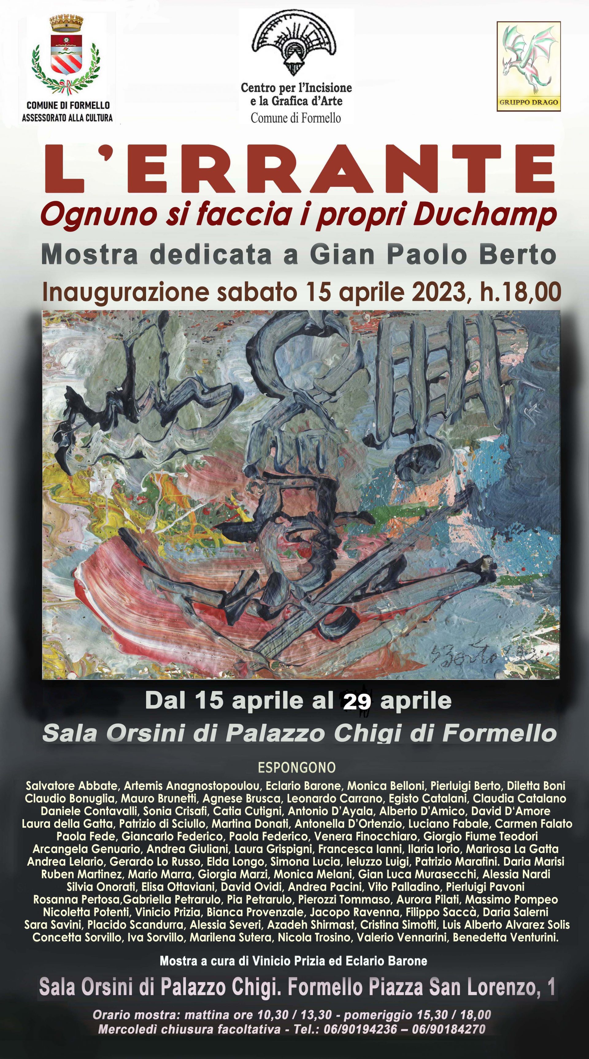 Il Centro per l’Incisione e la Grafica d’Arte del Comune di Formello, diretto da Vinicio Prizia, presenta la mostra collettiva dedicata al maestro Gianpaolo Berto, recentemente scomparso nel novembre del 2022, dal titolo ‘L’Errante’.