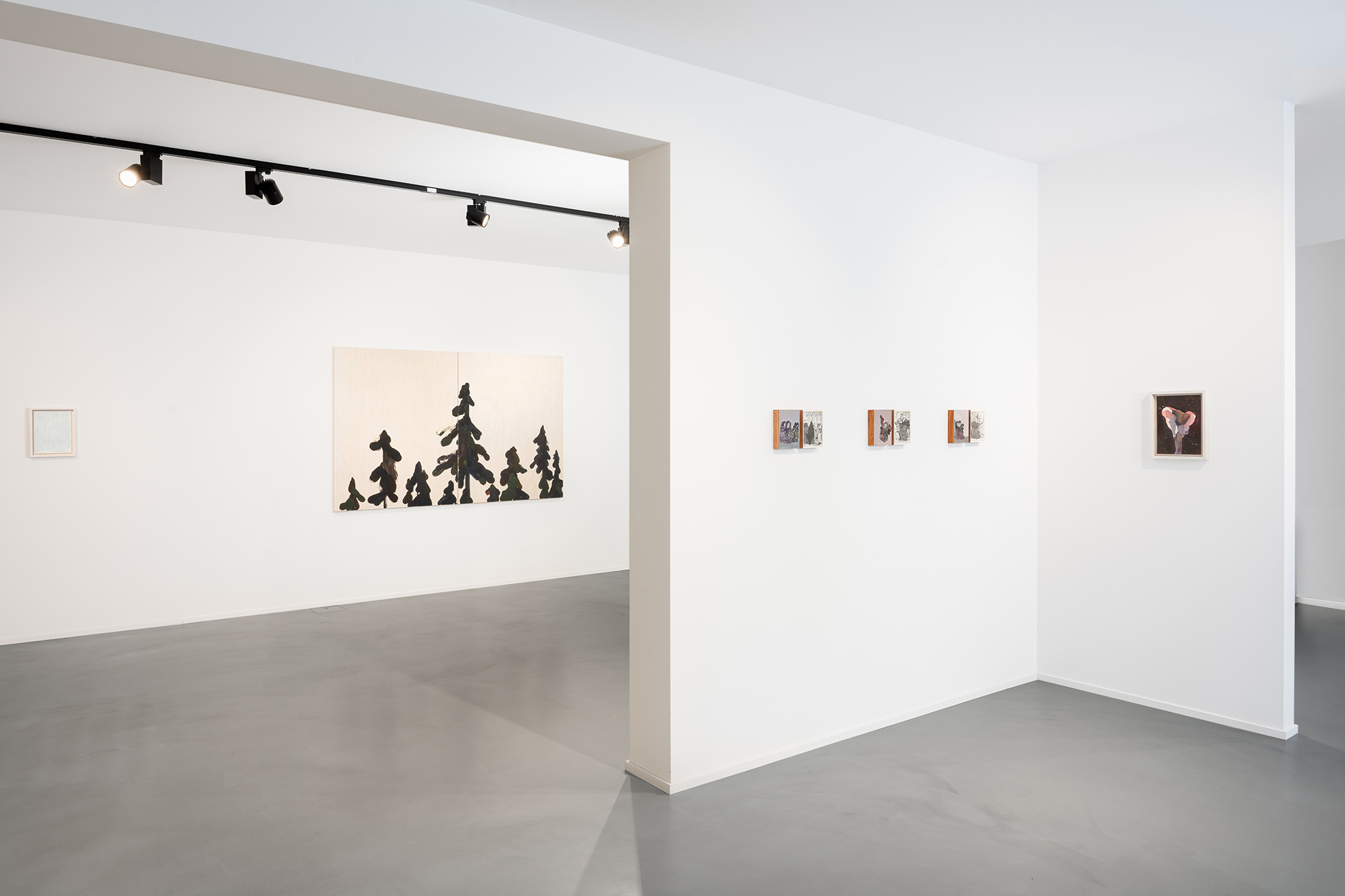 La grande opera centrale della mostra è intitolata Schwarzeide—quoting Luc Tuymans che, come apertamente espresso, allude all’omonimo dipinto ad olio su tela dell’artista belga Luc Tuymans. Elisa Bertaglia, nel suo dittico dalle importanti dimensioni 140x240 cm, richiama passo per passo la gestualità pittorica e le forme dell’opera di Tuymans, ma ne reinventa lo scenario sullo sfondo disegnato meticolosamente a grafite dove una rete sottile di erbe filamentose, foglie lanceolate e rami intrecciati popolano in densità le quinte della rappresentazione. Così, il vuoto proprio del simbolo e della memoria è colmato da una barriera eterea di arbusti, senza radice né cima, che chiude l'immaginario dello spettatore.