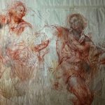 “Mi piacciono le carte recuperate – spiega l’autore- perché disegno riciclando il materiale e anche gli studi di anatomia. Quando disegno non seguo alcuno schema. Non vado a riprodurre uno studio perché secondo me si blocca la creatività, si diventa un mero ingranditore del proprio bozzetto preparatorio. Mentre quando vado a lavorarci sopra appaiono sottotraccia altri pensieri. In questo caso, gli studi di anatomia, le lezioni agli studenti, assieme ai materiali già usati mi vengono in aiuto. Ci sono due piani che si sovrappongono: la leggerezza del tratto che disegna l’etereo e l’impalpabile della matrice angelica attua una fusione con il disegno anatomico e corporeo. Una fusione che mi ricorda che anche l’uomo è bene, come gli angeli: lo è fin dalla sua ossatura”.
