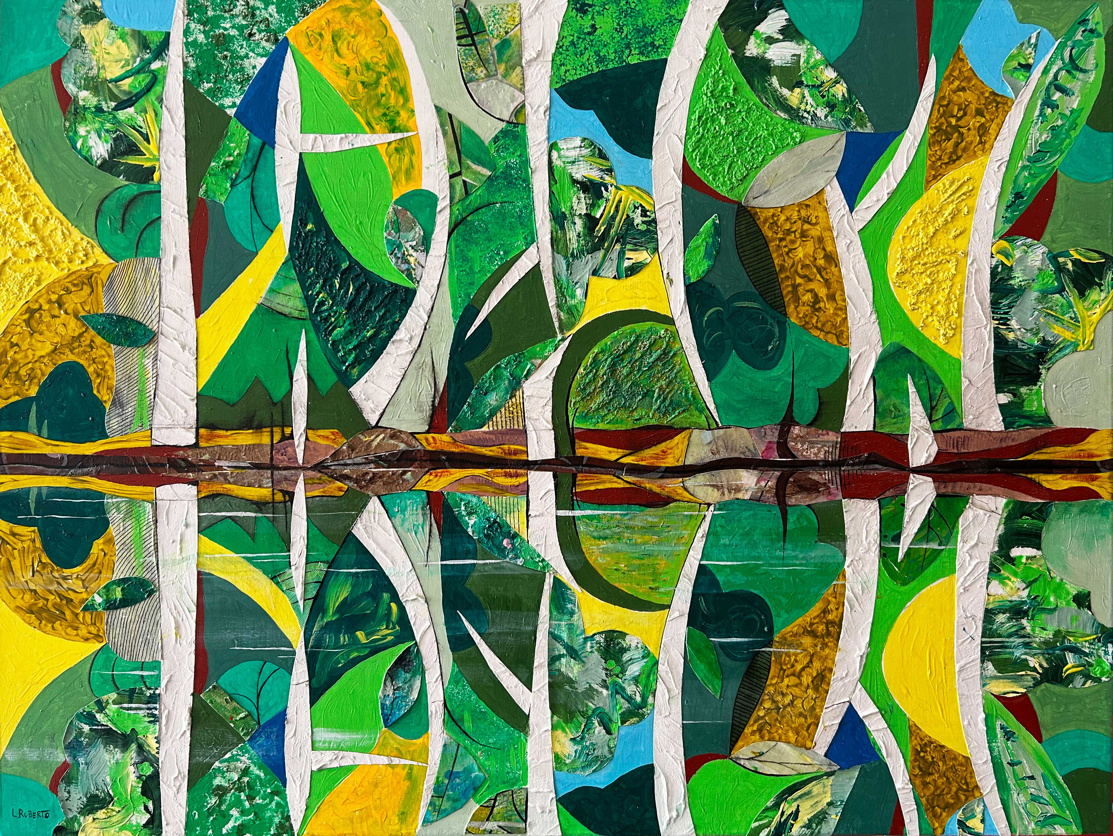 e trasformazione. Il quadro è concepito come un organismo complesso, contenitore di molteplici storie che si intrecciano in una nuova voce visiva. Il colore diventa elemento narrativo, cuore dell’opera; le forme, sfumando nell’immaginazione, lasciando emergere quell’intervallo sottile che l’artista definisce l’essenza.