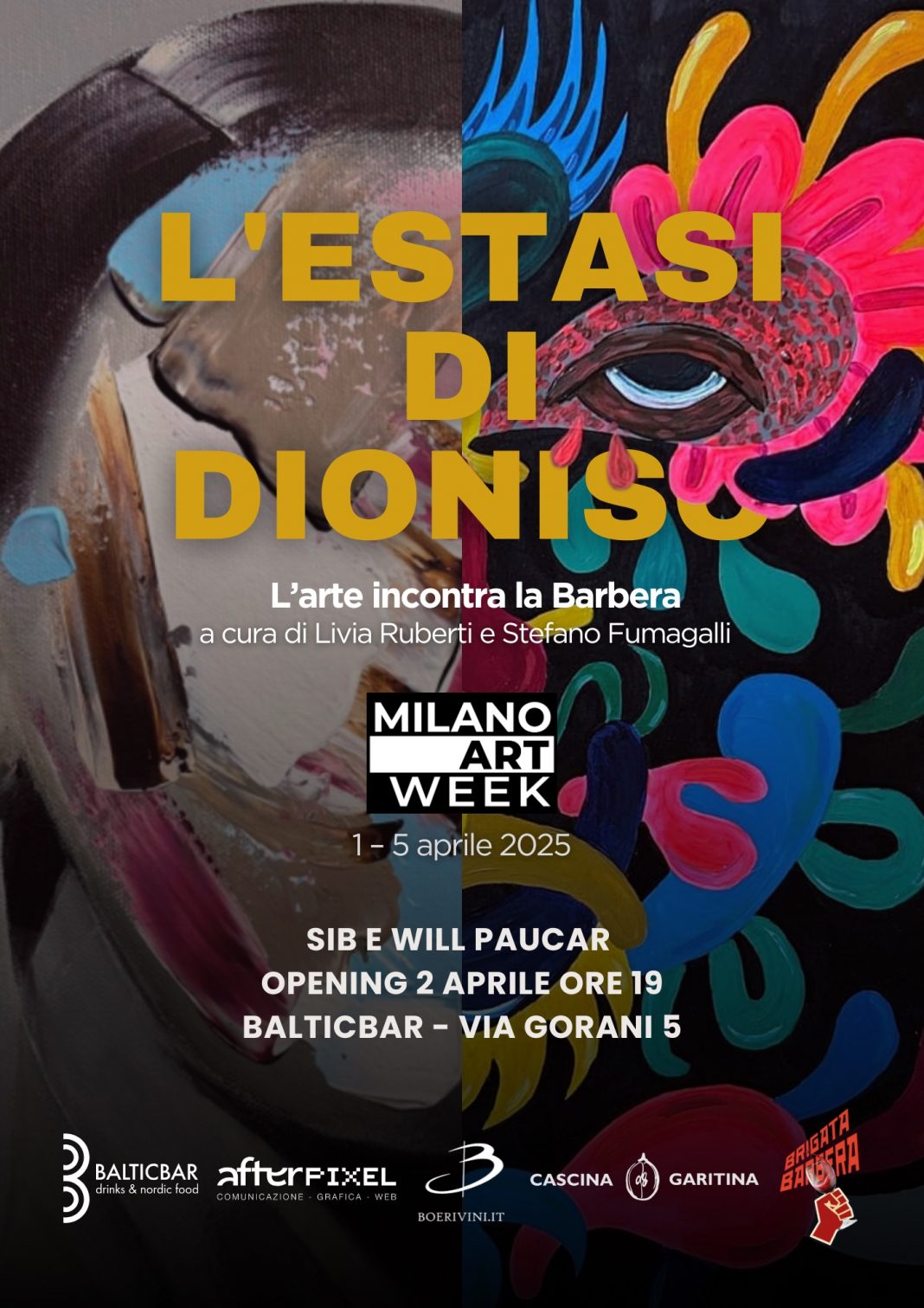 L'Estasi di Dioniso La Pittura incontra la Barbera SIB e Will Paucar Inaugurazione: 2 Aprile 2025 ore 19, Balticbar - via Gorani 5
