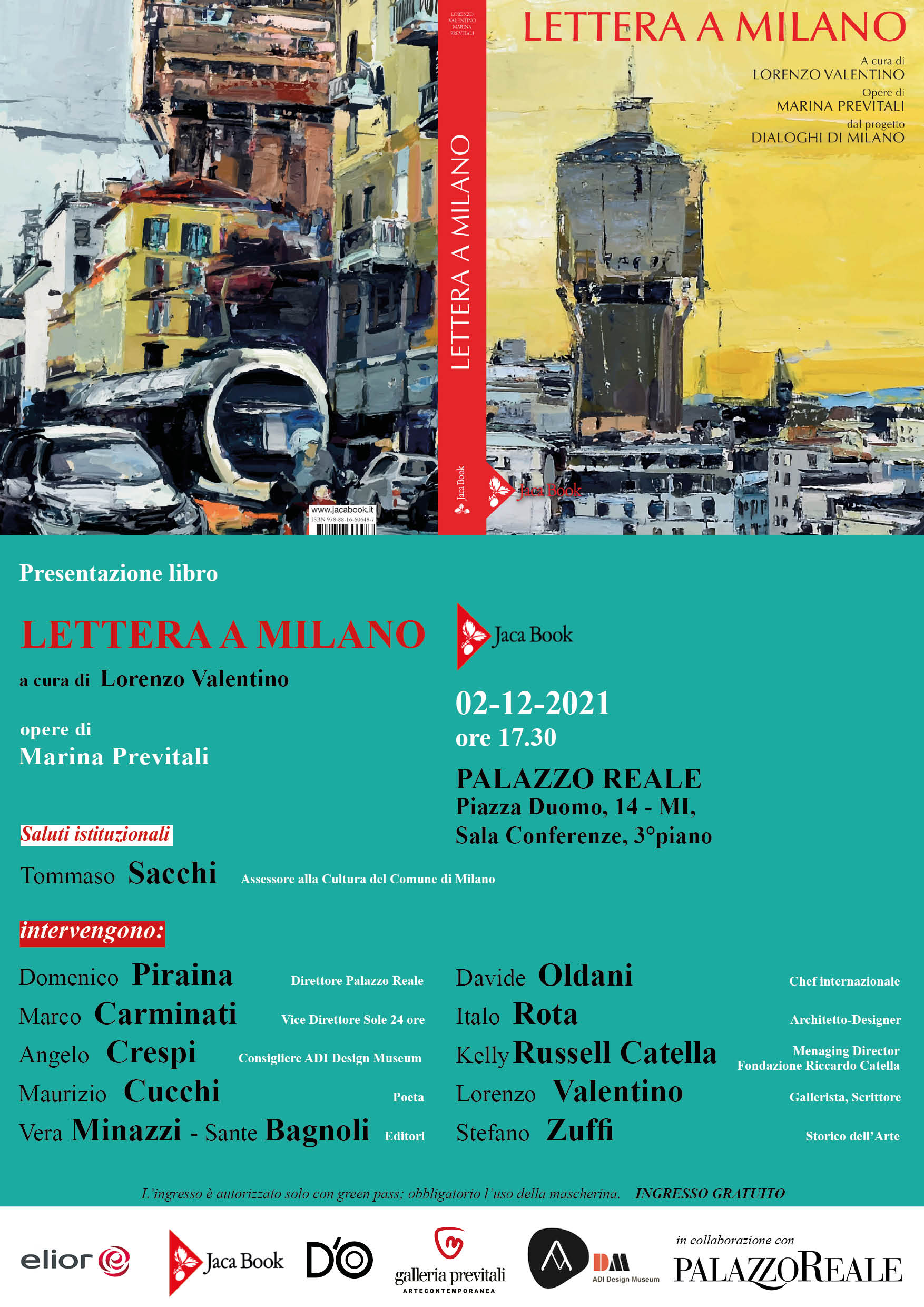 A Palazzo Reale sarà presentato il volume Lettera a Milano, a cura di Lorenzo Valentino, Jaca Book Edizioni, che contiene 52 lettere, scritte da personalità illustri, rappresentative dei diversi ambiti professionali, accompagnate dalle opere monografiche di Marina Previtali.