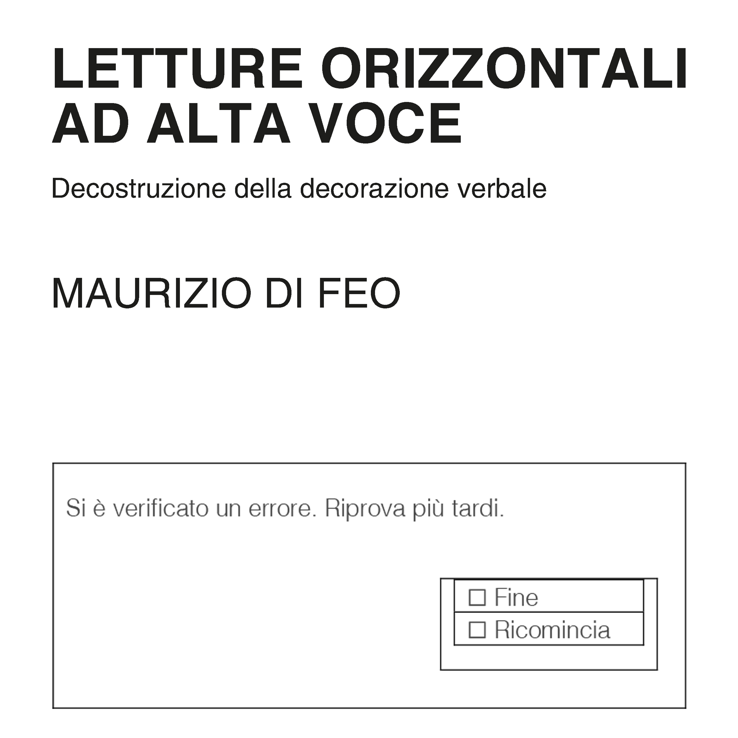 LETTURE ORIZZONTALI AD ALTA VOCE – Decostruzione della decorazione verbalehttps://www.exibart.com/repository/media/formidable/11/img/605/Maurizio-Di-Feo-Letture-orizzontali-decostruzione-della-decorazione-1068x1068.jpg