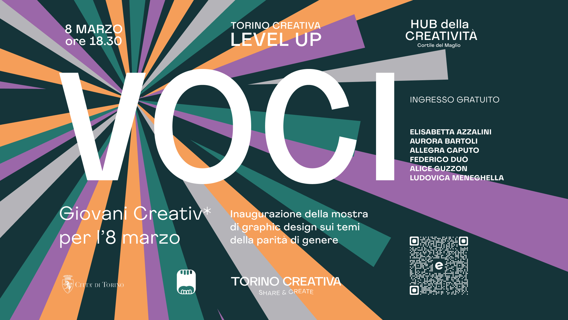 Torino Creativa è felice di annunciare il nuovo evento "LEVEL UP! VOCI - Giovani Creativ* per l'8 marzo", il consueto appuntamento mensile sulla creatività giovanile - in questa occasione dedicato alla Giornata Internazionale della Donna - si svolgerà nella location dell'HUB della Creatività al Cortile del Maglio (Via Vittorio Andreis 18 – int. 18/L, TO).