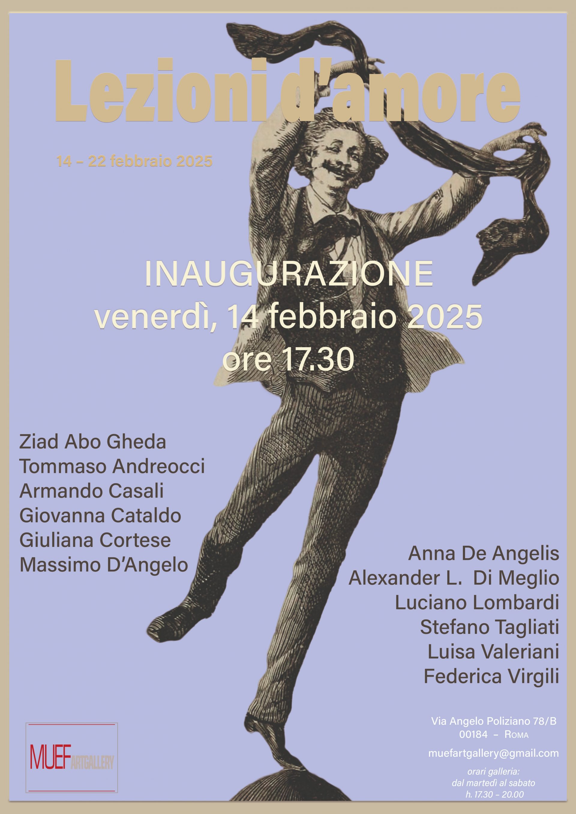 Il Muef ArtGallery è lieto di presentare Lezioni d’amore una mostra in cui gli artisti hanno l’intento di esplorare l’amore in tutte le sue sfaccettature, un tema eterno e universale che attraversa il tempo, le culture e le emozioni.