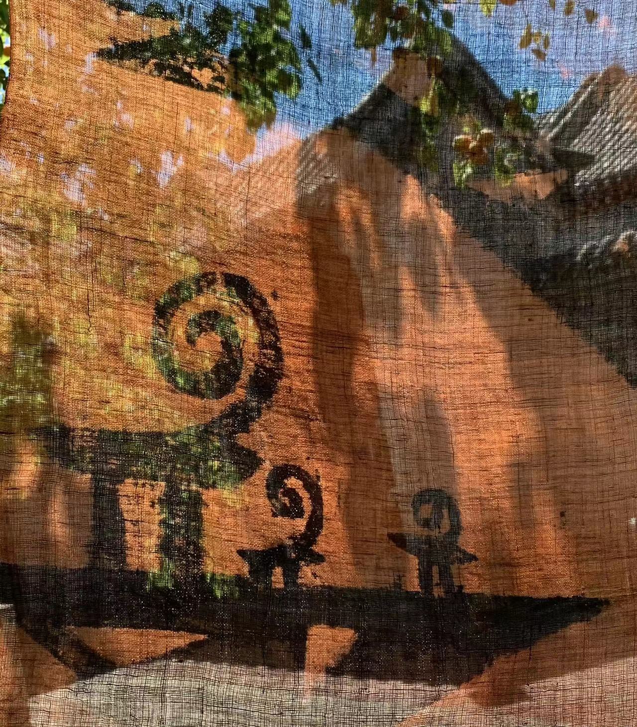 In "Un Sapore di Sole", Li Dongxia presenta una fusione unica della tradizionale Xilografia. Impiegando questi antichi metodi su tessuti organici e utilizzando coloranti vegetali, l'artista dà forma a un tessuto affascinante che interagisce con la luce, l'aria e l'acqua. Le opere di Li Dongxia vanno oltre la mera estetica, spingendo gli spettatori a contemplare l'interazione e l'interferenza tra natura e umanità. Immersi nei disegni e nei colori esclusivi dell'artista, gli spettatori sono anche invitati a riflettere sul loro rapporto con il mondo naturalistico.