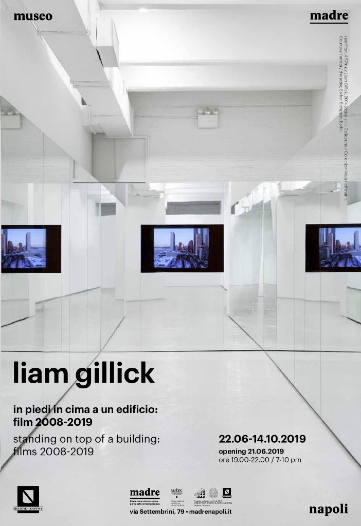 In piedi in cima a un edificio: Film 2008-2019 / Standing on Top of a Building: Films 2008-2019 è la prima retrospettiva dedicata esclusivamente alla produzione video-filmica di Liam Gillick (Aylesbury, UK, 1964), uno dei più importanti artisti contemporanei a livello internazionale, che nella sua pratica esplora lo spazio-tempo culturale, politico, economico della società tardo-capitalista, rivendicando in essa la riflessione, la consapevolezza e la partecipazione ancora possibili dell’individuo.