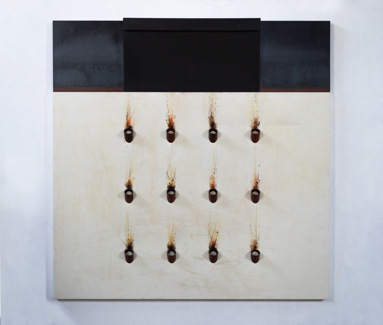 Armando Gioia, dal canto suo, elabora forme segniche, sedimentazioni e composizioni che nascono dal lutto e si spingono verso la riscoperta delle genealogie. Nella sua opera, la materia – che sia legno, ferro o sabbia – diventa supporto di un pensiero mitico, radicato nella memoria familiare e spirituale. Le sue opere non sono solo visioni, ma vere e proprie trascrizioni esistenziali, che si muovono tra racconto, simbolo e silenzio.