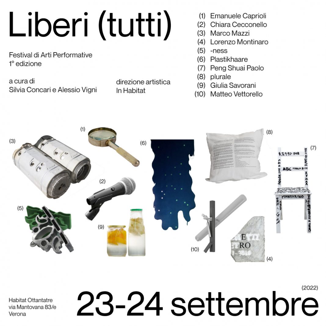 LIBERI (tutti) è la prima edizione di un Festival di Arti Performative, che avrà luogo negli spazi di HABITAT OTTANTATRE a Verona. Il progetto è stato pensato come “osservatorio”, a cadenza annuale, con lo scopo di monitorare le novità artistiche nel campo della performing art.
