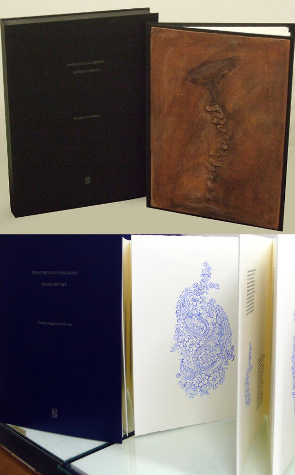 Un po’ per ossessione personale e un po’ sperimentare soluzioni nuove, alla fine ho fatto un libro di terra cotta. Non tutto di terra cotta solo gli esterni, la copertina ed il retro. La mia naturale tendenza è quella di creare oggetti, cose, impianti tridimensionali.