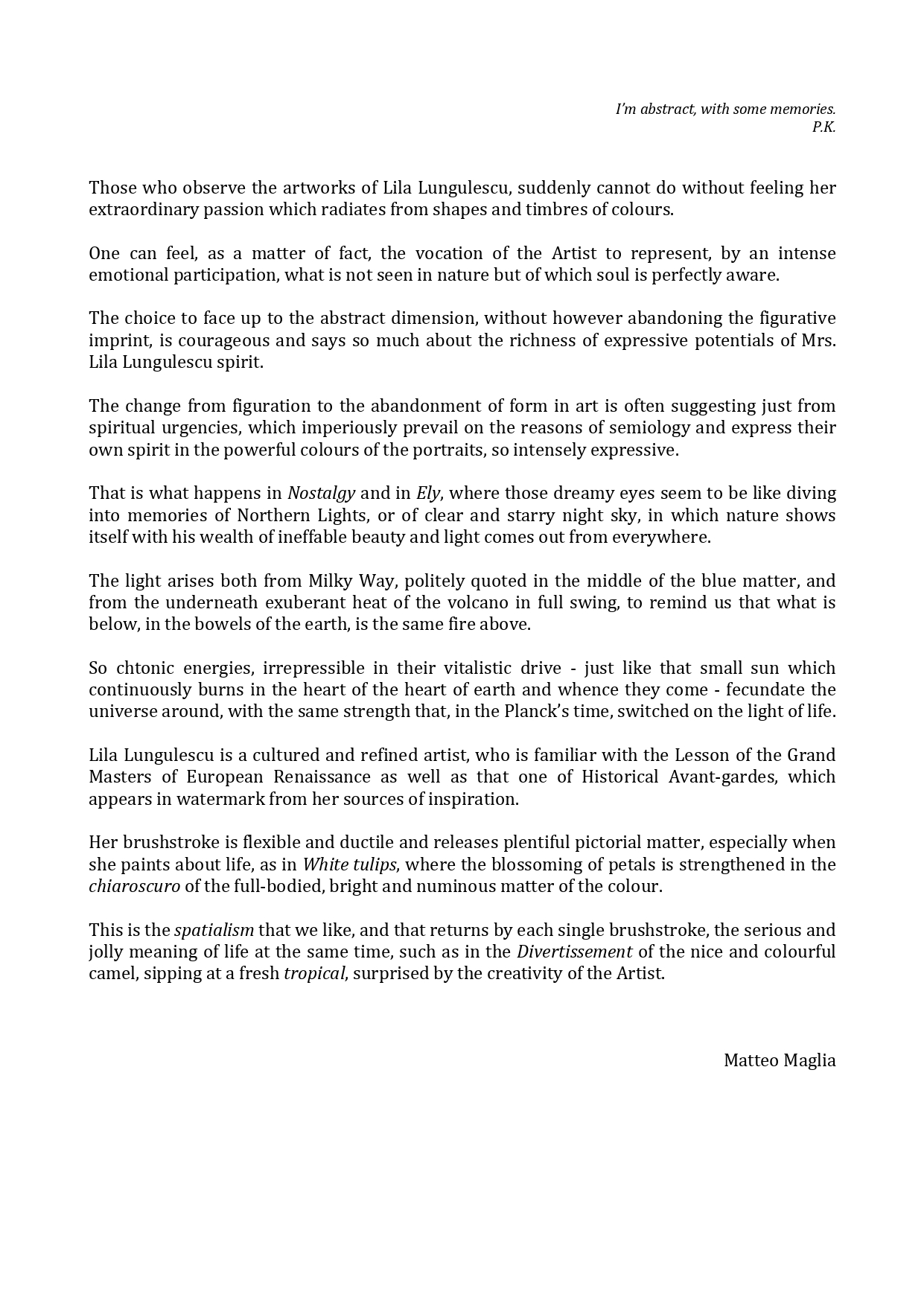 Lila Lungulescu – Naturalismo astratto e cromie dello spirito