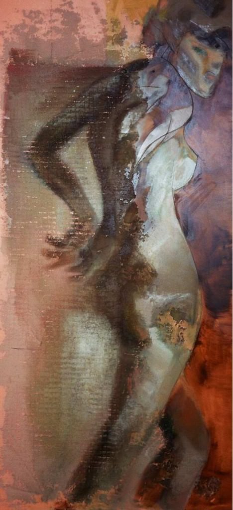 Eseguite con tecniche miste che danno spessore materico, le tele spaziano dallo studio del corpo umano come elemento decorativo e puramente estetico alla dinamicità della figura, dalle espressioni del volto all’astrazione delle forme