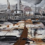 Chi vive intorno a questi luoghi aveva una memoria terrigna, ma in un tempo breve è stato strappato al torpore rurale da immense fabbriche, sempre più grandi delle proprie possibilità. Dopo averle accettate, discusse e odiate, oggi le osserva e le sorvola ogni volta che cerca a occidente il mare aperto.