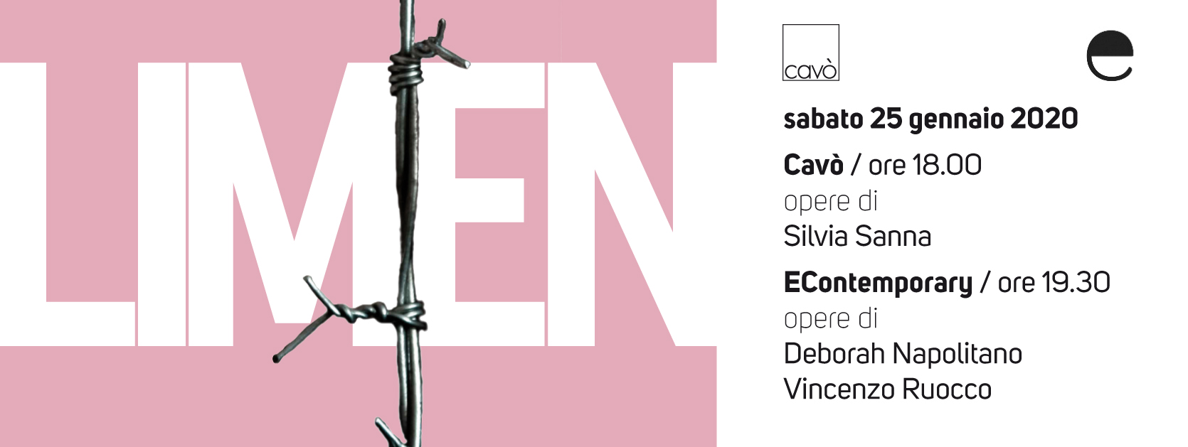 25 Gennaio 2020, ore 18.00 / Cavò via San Rocco 1; ore 19.30 / EContemporary via Crispi 28