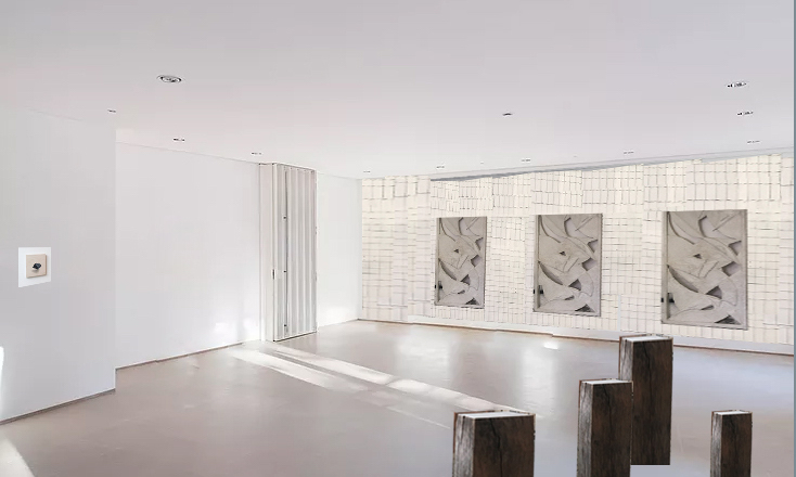 Questa attitudine a esplorare il confine tra dimensioni diverse si ritrova nelle sculture a parete di Franceso Snote (Biella, 1991): al piano inferiore della galleria l’artista presenta un trittico di largo formato, in cui il gesso crea un continuo scarto tra volume e superficie. Sullo sfondo dei tre elementi, una griglia metallica pone delle direttrici di prospettiva: Snote esplora del resto una forma del ‘guardare’ all’arte che recupera larga parte dell’attitudine romantica di fronte al sublime. Nei suoi lavori, la polarità tra spettatore e opera crea - e oltrepassa - una soglia che non è solo quella tra due diverse porzioni di mondo, ma anche quella tra due mondi diversi. La stessa idea si ritrova nella scultura proposta al piano superiore, insieme a una serie di disegni inediti in cui la figura umana, di spalle, si pone di fronte a una dimensione ‘altra’ – mai del tutto raggiungibile per definizione. Un’attitudine che è quasi titanismo, come osserva Michele Bertolino nel testo critico a lui dedicato.