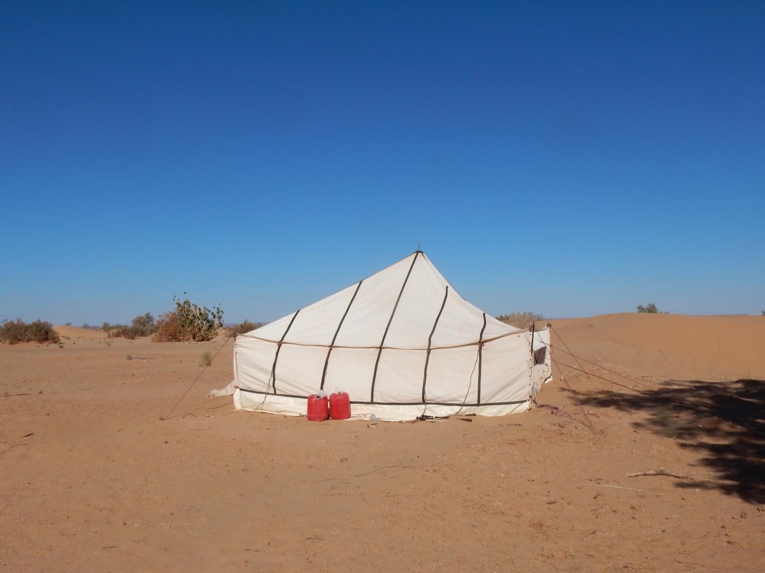 Nella Sala del Padiglione l'affresco si materializza con una grande tenda che il pubblico è invitato ad abitare. Dentro, disegni, bozzetti, oggetti, piccole sculture, luci, maschere, profumi e stoffe sono rifugi preziosi o navi che esplorano mari sconosciuti, come luogo del viaggio e della trasformazione. L'architettura si sgretola e diventa memoria, nomadismo e mutazione, svincolata dalla necessità di fissarsi in una struttura saldamente ancorata al terreno. E' contro-architettura.