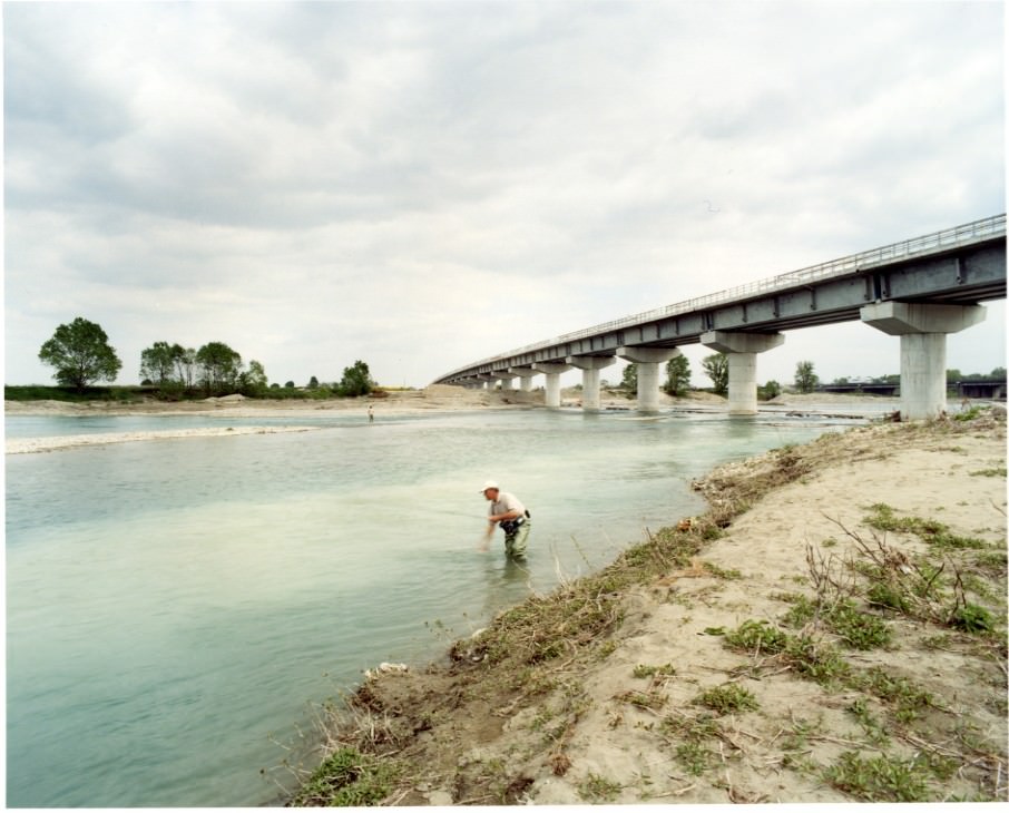 Dopo una serie di ricognizioni fatte a Fontanellato e poi a Somaglia, dove sono state costruite le due gallerie artificiali del tracciato, l'attenzione di Fossati si è alla fine orientata sui ponti del fiume Taro e del fiume Po. Il paesaggio fluviale del Po, nelle vicinanze della costruzione del ponte strallato, è sembrato essere uno dei punti chiave per la percezione del paesaggio che si stava delineando attorno ad una delle opere principali della tratta Bologna Milano, un luogo simbolico per la cultura italiana, dove dal dopoguerra, registi, scrittori e fotografi sono spesso ritornati per trovare un senso a cambiamenti di natura epocale.