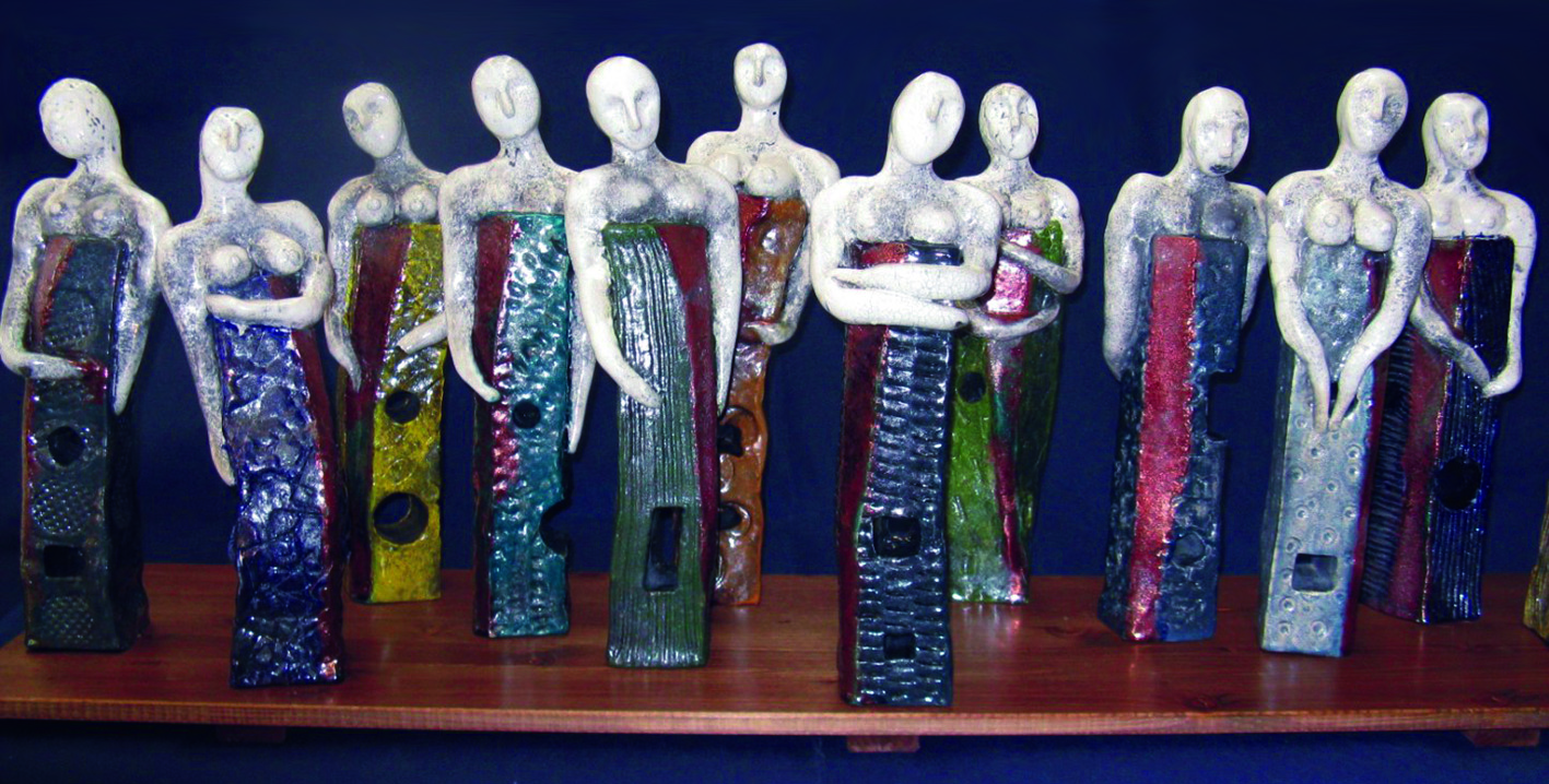 L’opera teatrale di Bertolt Brecht rappresentata in ceramica Raku che mostra gente silente, personaggi equivoci, ladri, puttane e poco di buono, nella loro fissità eterna; una stasi falsa, apparente, che cessa di esistere appena si spengono (non si accendono) le luci, e i protagonisti iniziano a recitare, muovendosi, il loro ruolo corrotto in una società che tutto pretende e niente offre.