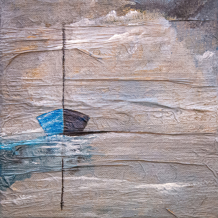 La prima personale di Lino Bianco alla Galleria Arianna Sartori intitolata “ἄνθρωπος (Antropo)” si era tenuta nel maggio/giugno 2020, poi è seguita la personale intitolata “Dei Cerchi, dei Soli e delle Lune” nel febbraio 2023 ed in queste due occasioni erano esposte delle sculture, mentre in questa nuova personale, l’Artista presenta alle pareti della Galleria ventisei piccoli dipinti di cm 20x20, realizzati appositamente per questa esposizione intitolata “Linea di galleggiamento”.
