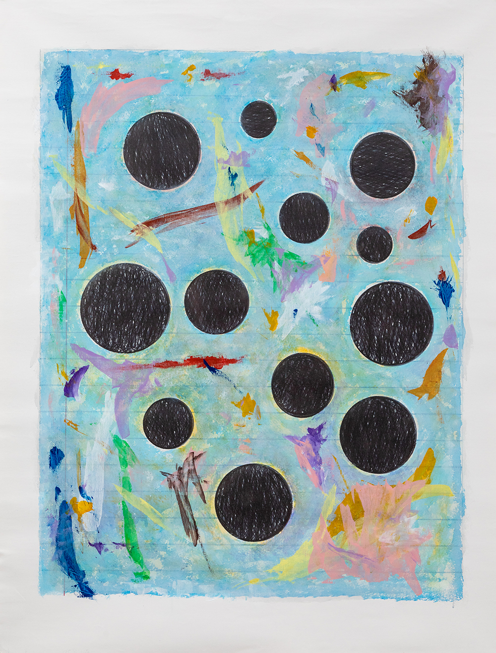I lavori che l’artista presenta in galleria nascono da una serie di disegni realizzati nel 2018. Disegni poi fotografati, ingranditi e trasferiti su tela.